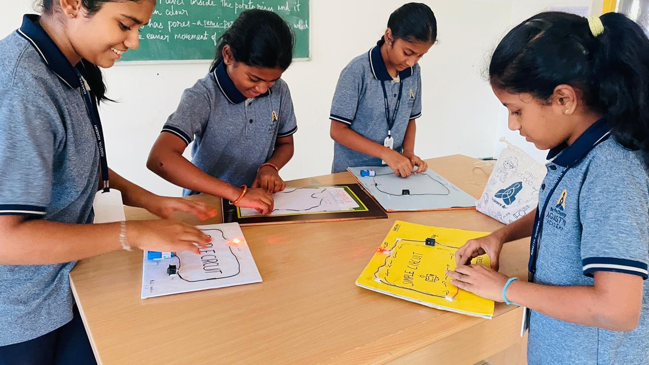 At Agastya Academy, Science is embraced not merely as a subject, but as a mindset—one that encourages inquiry, imagination, and thoughtful exploration. We believe that true learning happens when curiosity meets experience. This year, we proudly inaugurated the ‘Eureka Science Studio’, a vibrant new space dedicated to hands-on exploration and scientific inquiry for students from Grades 4 to 8. More than just a lab, Eureka is a launchpad for creativity, critical thinking, and discovery.